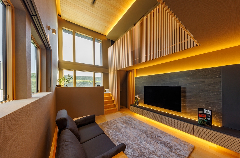 空間に奥行きとリズムが生まれ、リビング全体がぐっと洗練された印象に。