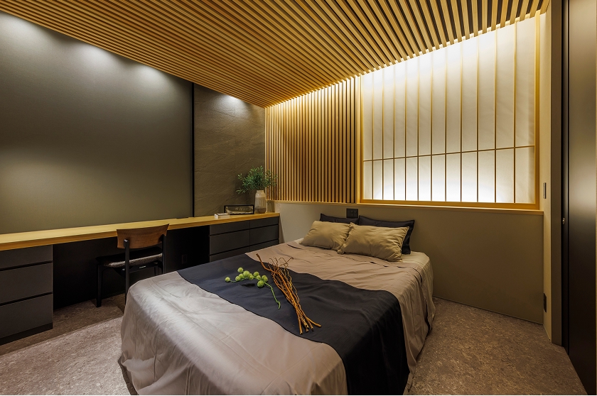 光を抑えた設えが、眠りへと導く静けさを演出。