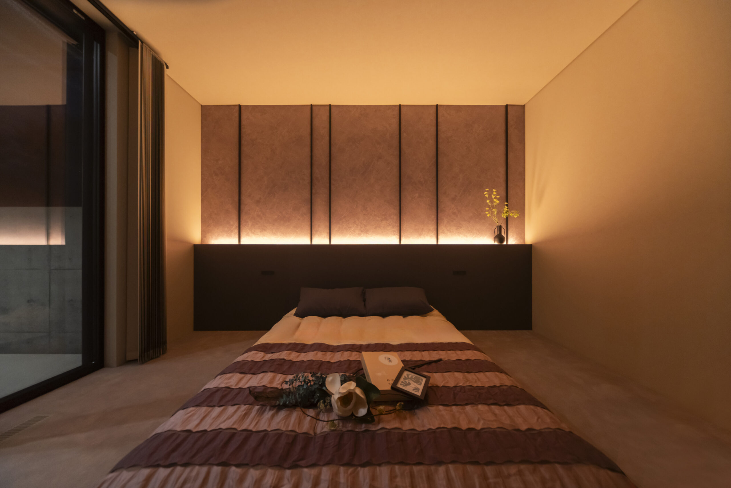 一日の疲れを癒やす寝室は、ヘッドボードの間接照明が幻想的な空間を演出。洗面室もワイドなミラーと照明設計により、身支度の時間さえも優雅なひとときへと変えてくれます。