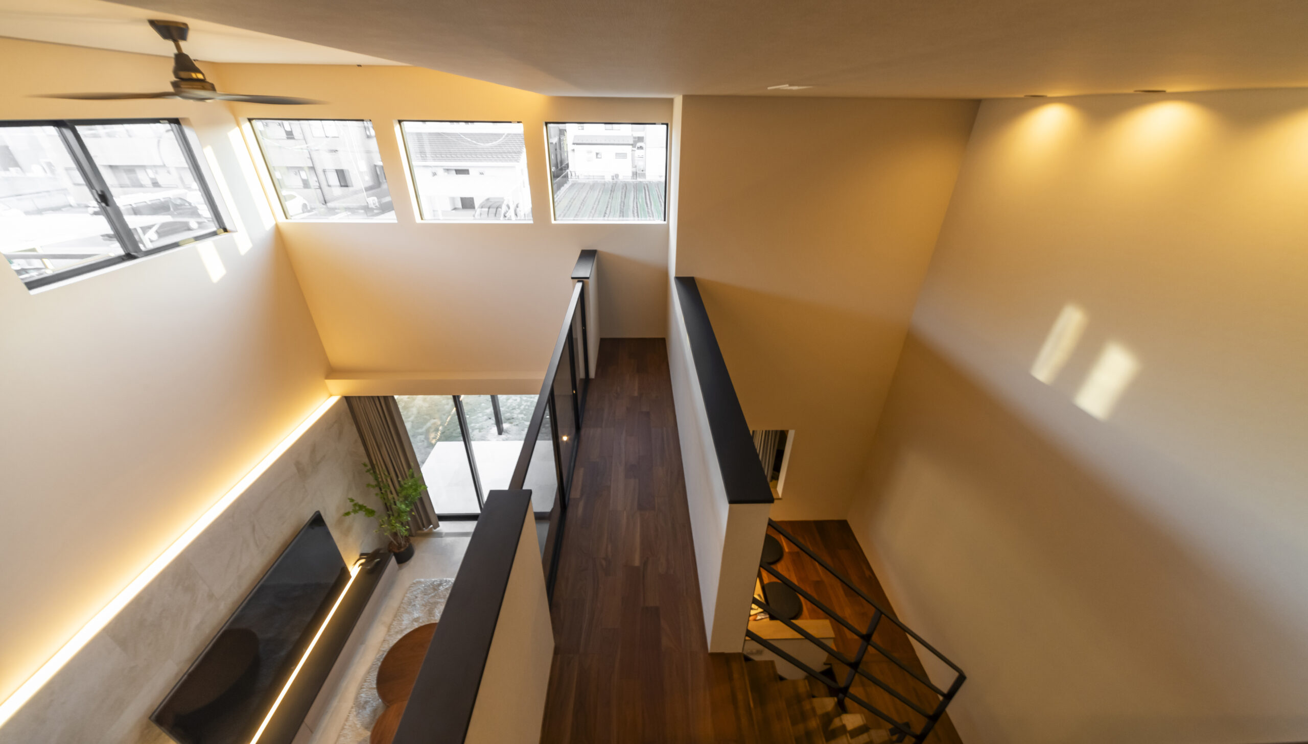 2階からふと視線を落とすと、そこにはいつも家族の穏やかな時間が流れています。高窓から降り注ぐ光がリビングを優しく包み、1階から聞こえる楽しげな声に心が満たされる……。そんな何気ない日常のひとときを、ドラマチックな記憶として刻んでくれます。