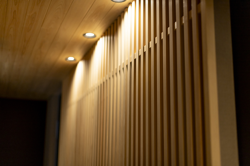 格子越しにこぼれる光と陰影が、美術館のような静けさを演出します。