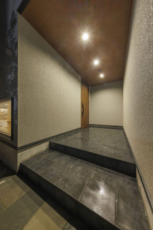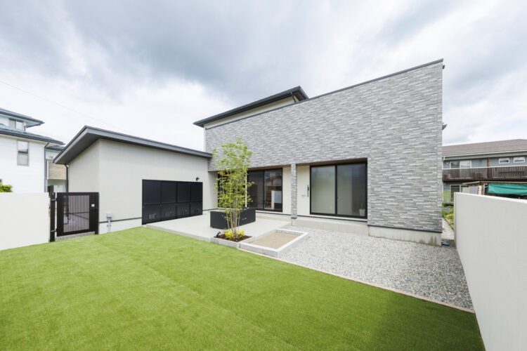 プライバシーを重視した広いお庭とインナーガレージのある60坪の邸宅