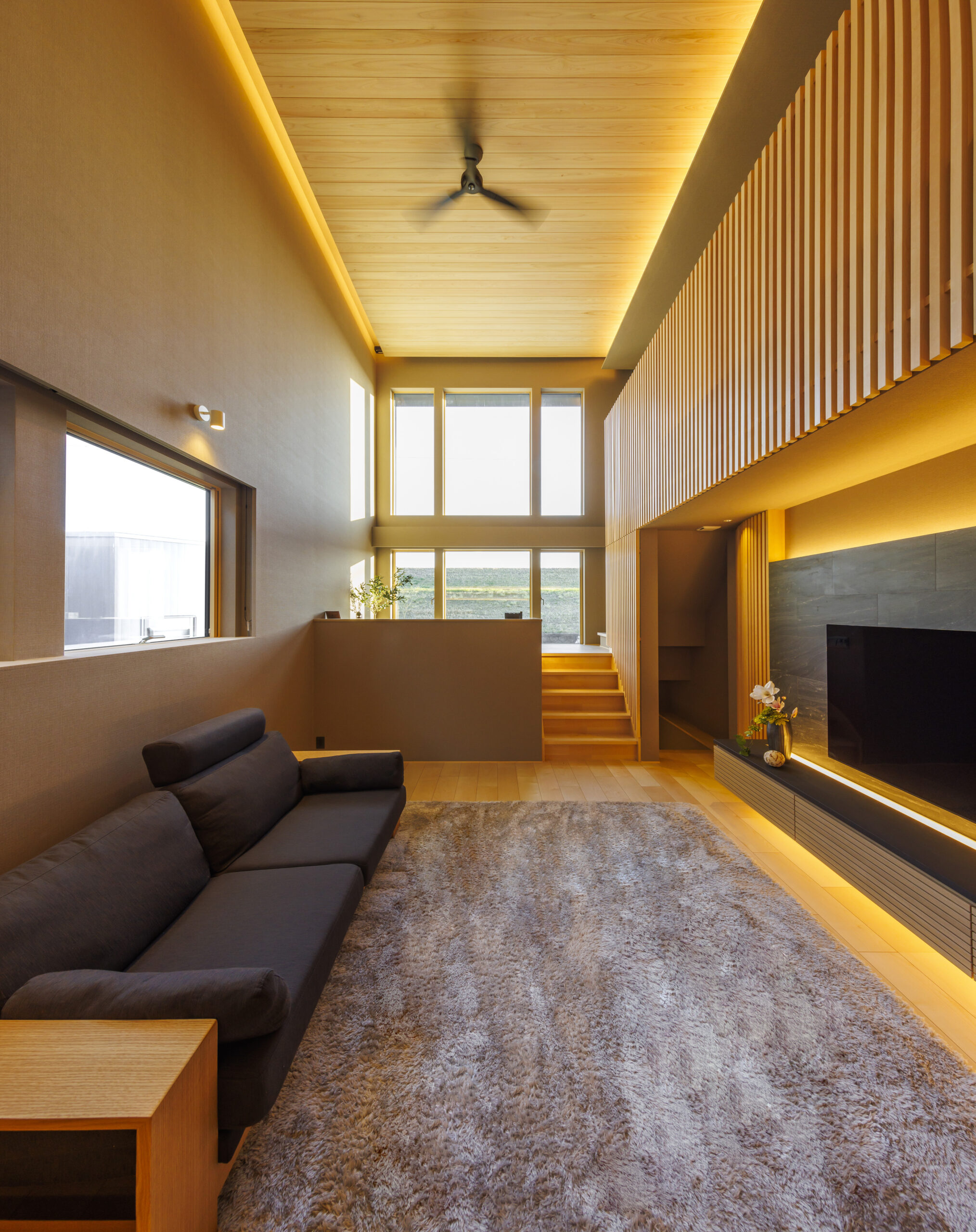 リビングに設けた大きな開口からは、暖かな陽の光が差しこみます。