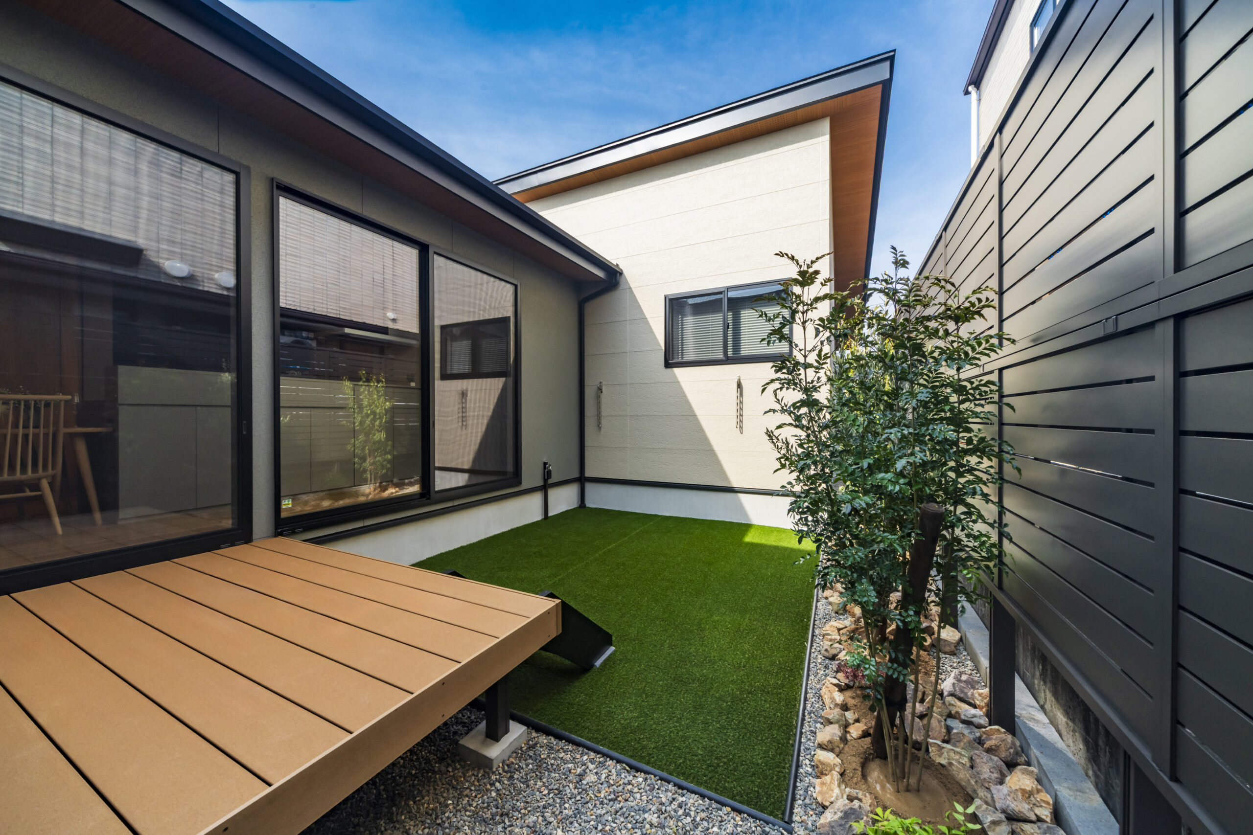 中庭により自然光と風が室内に行き渡り、外の視線を気にせず家族だけの穏やかな時間を楽しめます。