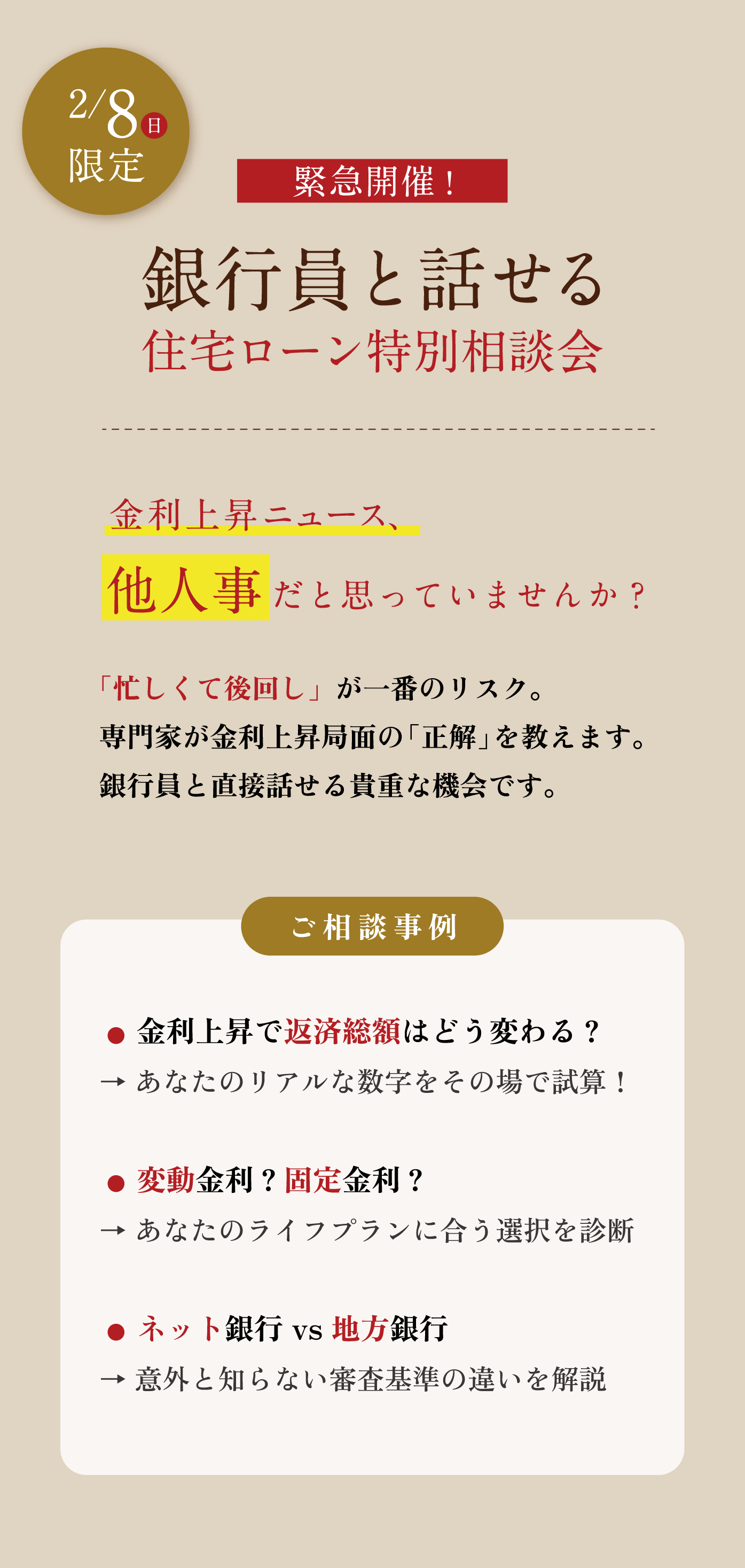 【2/8限定!銀行員と話せる住宅ローン特別相談会】はじめての家づくり相談会 in 高山ショールーム