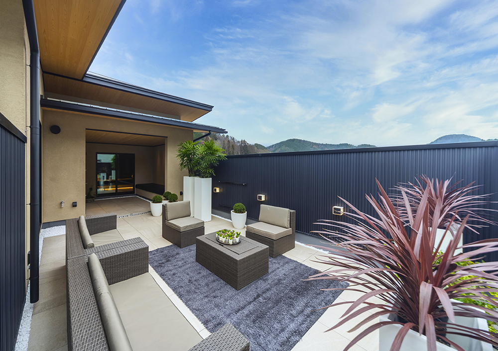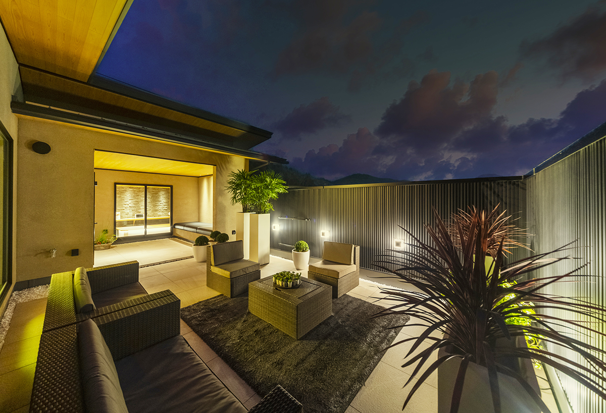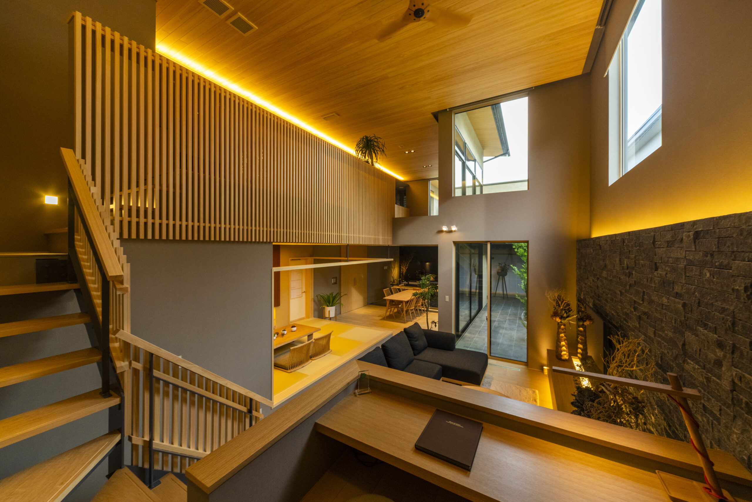 吹き抜けリビングや庭園が織りなす開放感は、まさにプライベートリゾート。