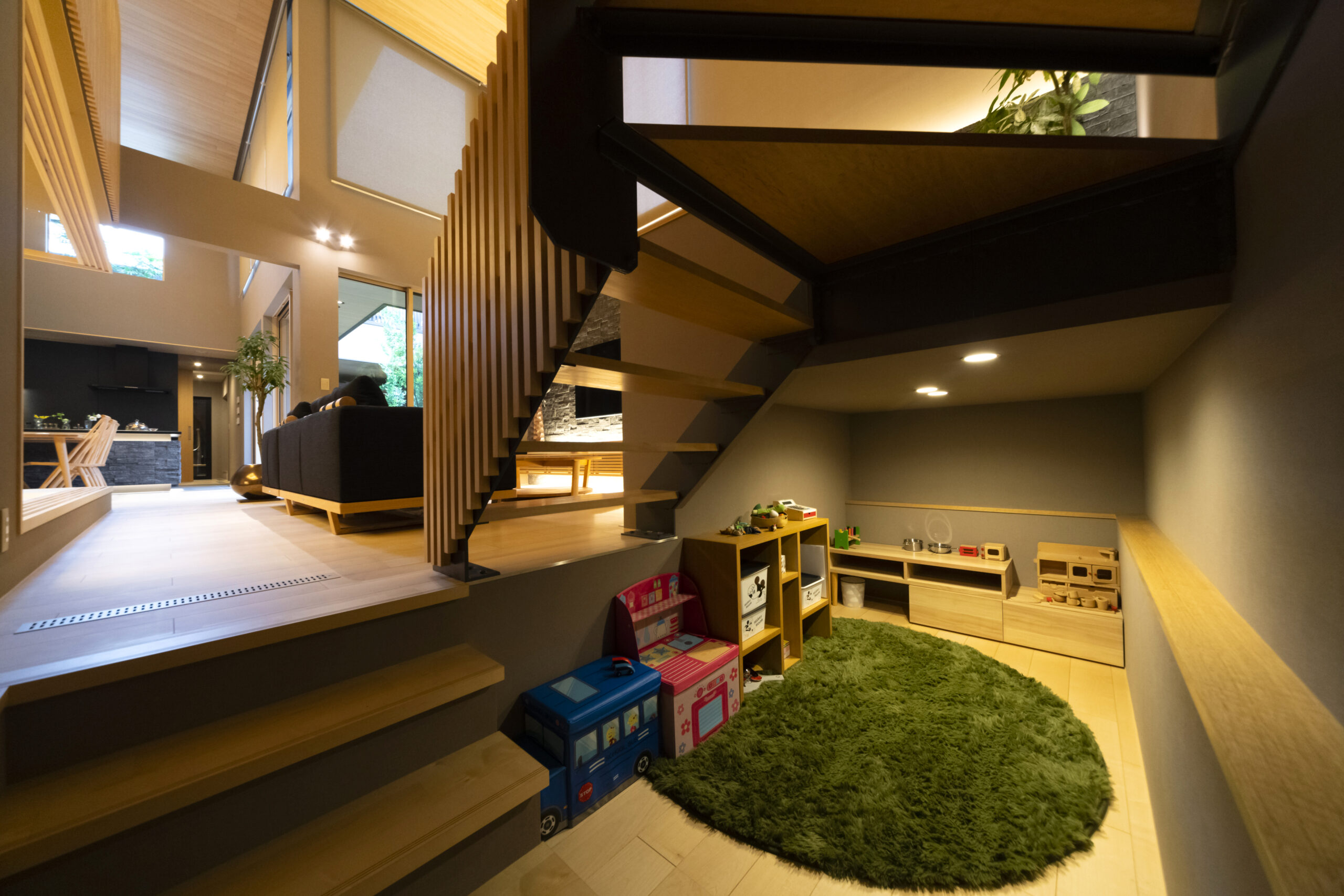寒い冬でも、家中どこにいてもぽかぽか暖かい。家族の会話が自然と弾む開放的なリビングや、秘密基地のような半地下。